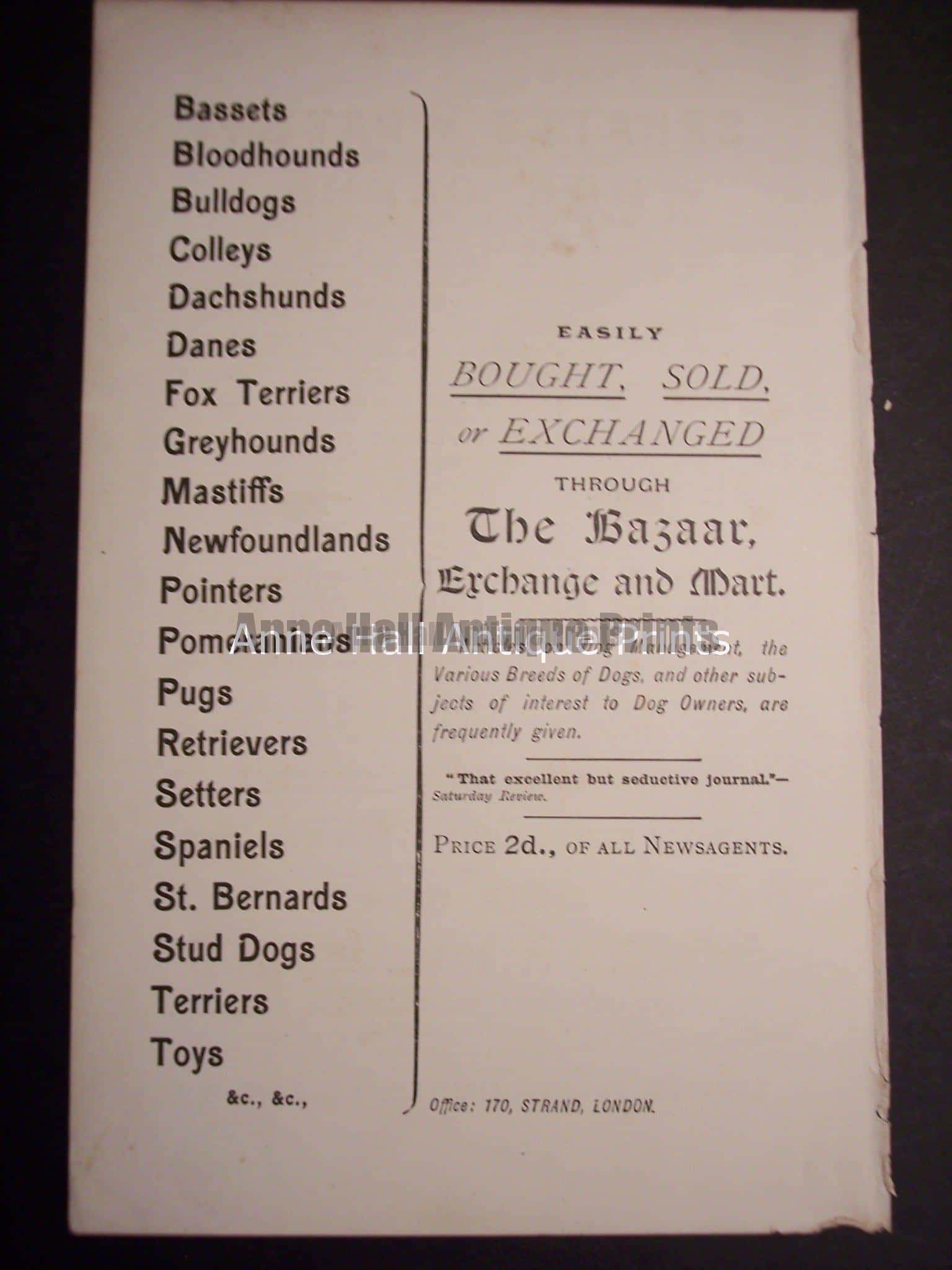 Cats & Dogs at Anne Hall Antique Prints. Our collections of original, cat-dog engravings and lithographs are antiques. That means they are at least 100 years old!
