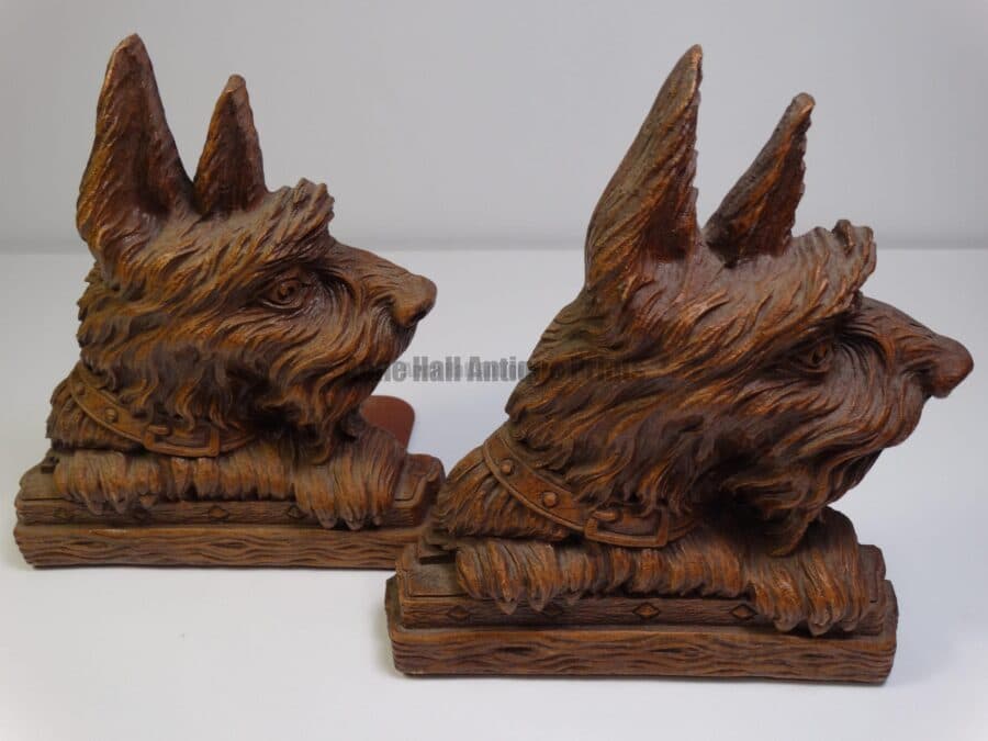 Antique Folk Art Bookends of Dogs, and Scotties
