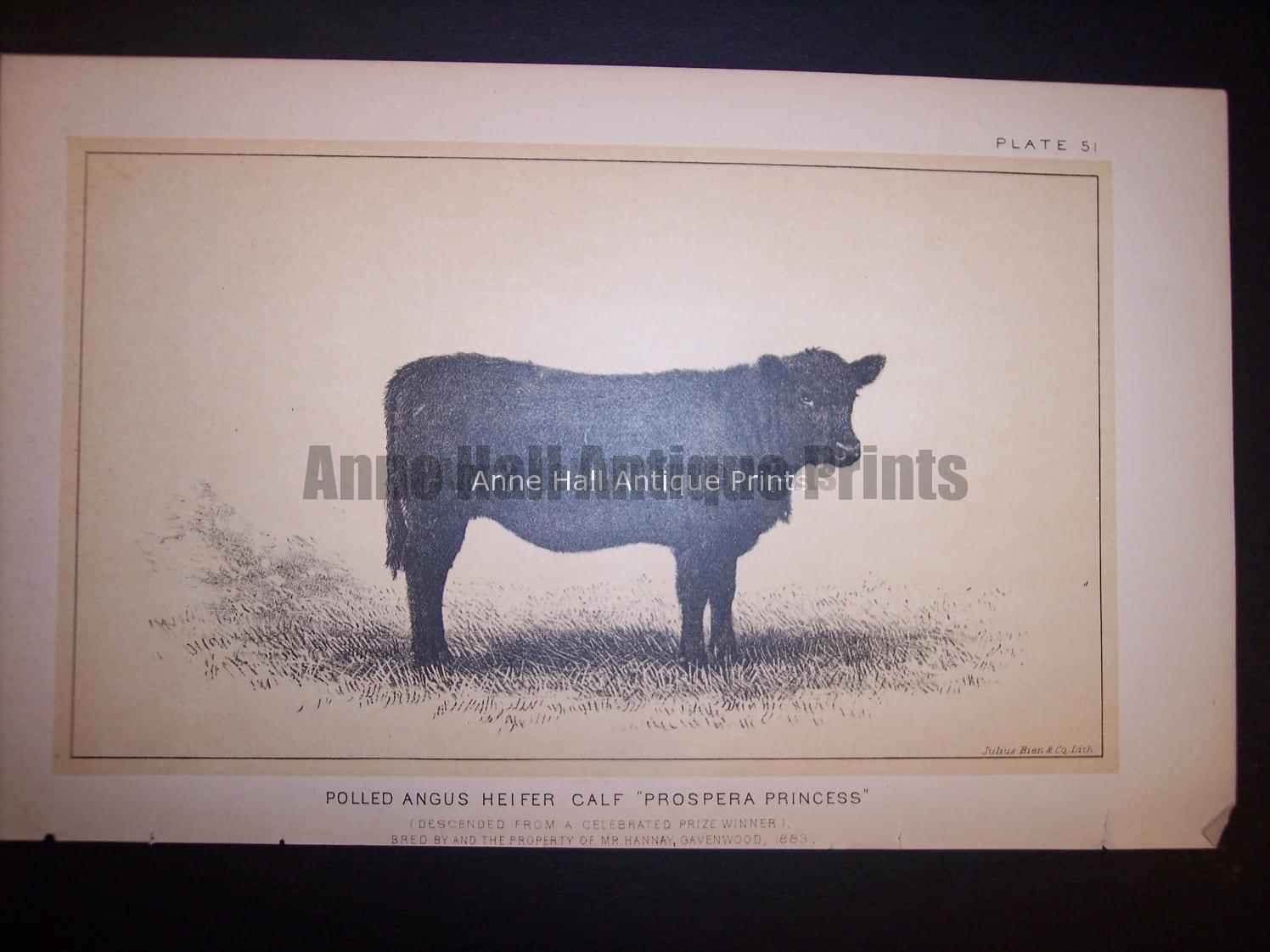 Antique Prints of Cattle: Cows & Bulls. American Antique Lithographs Published 1888.