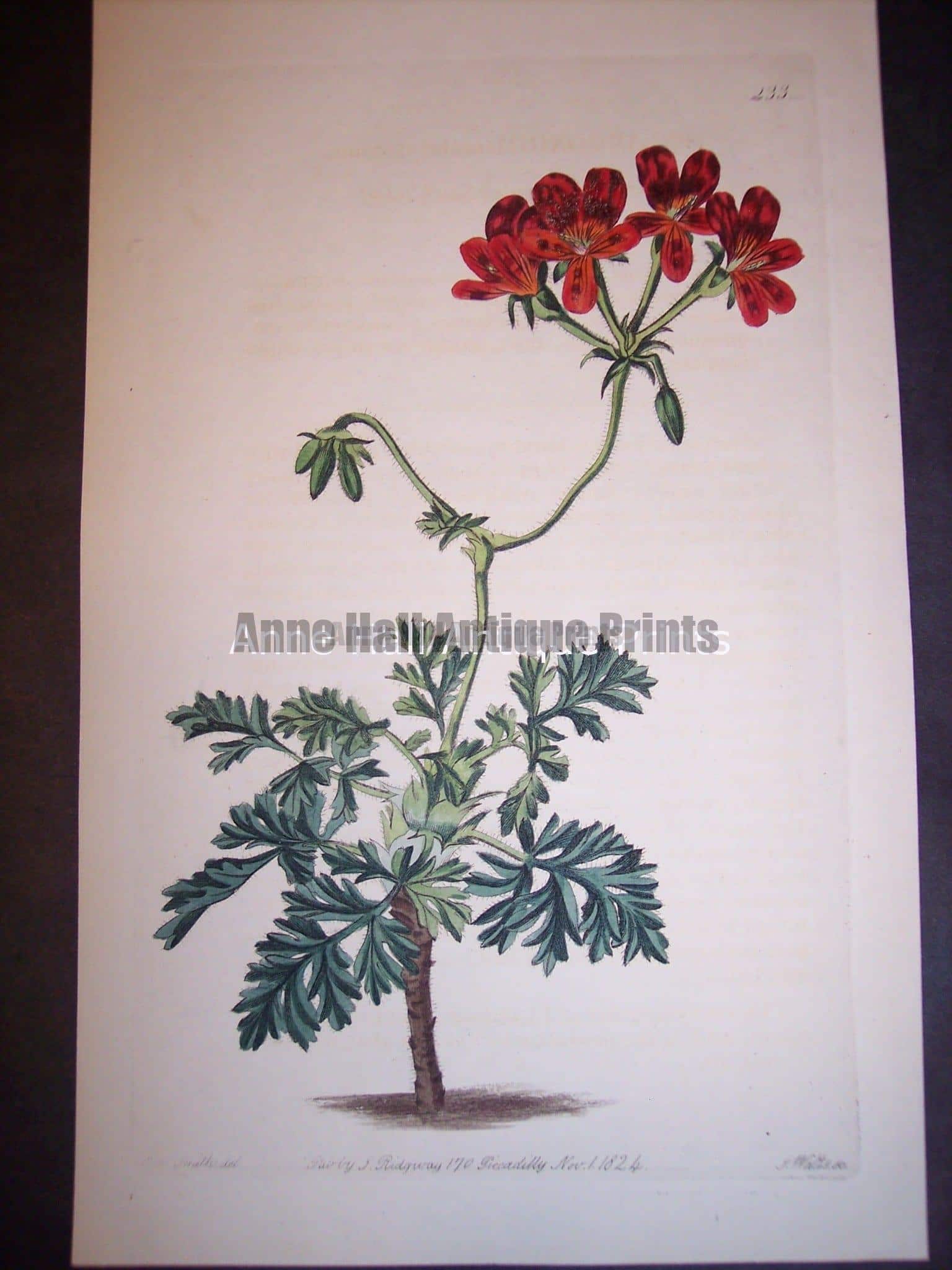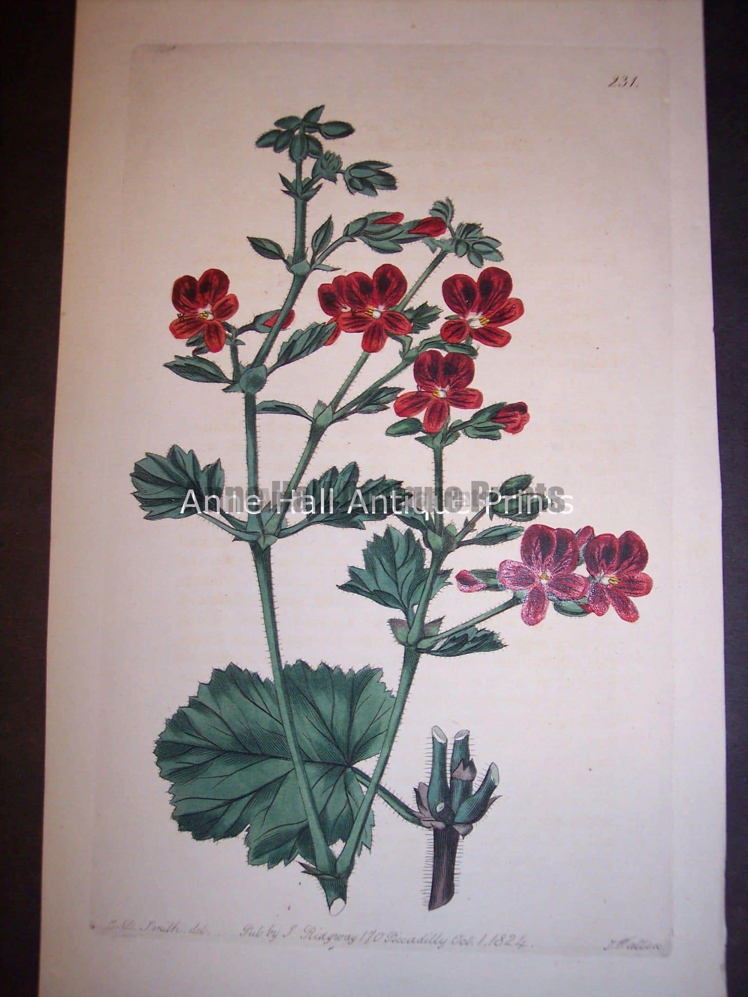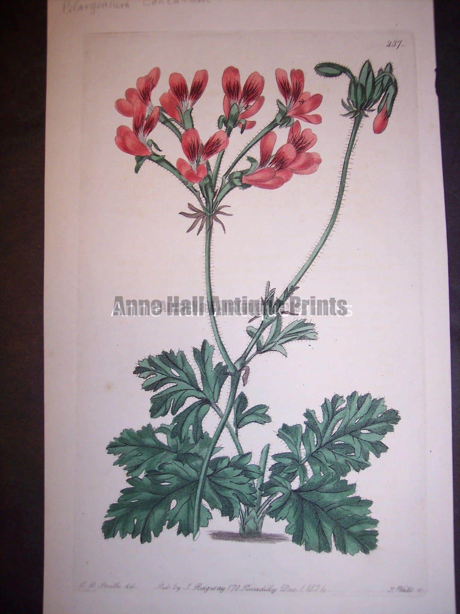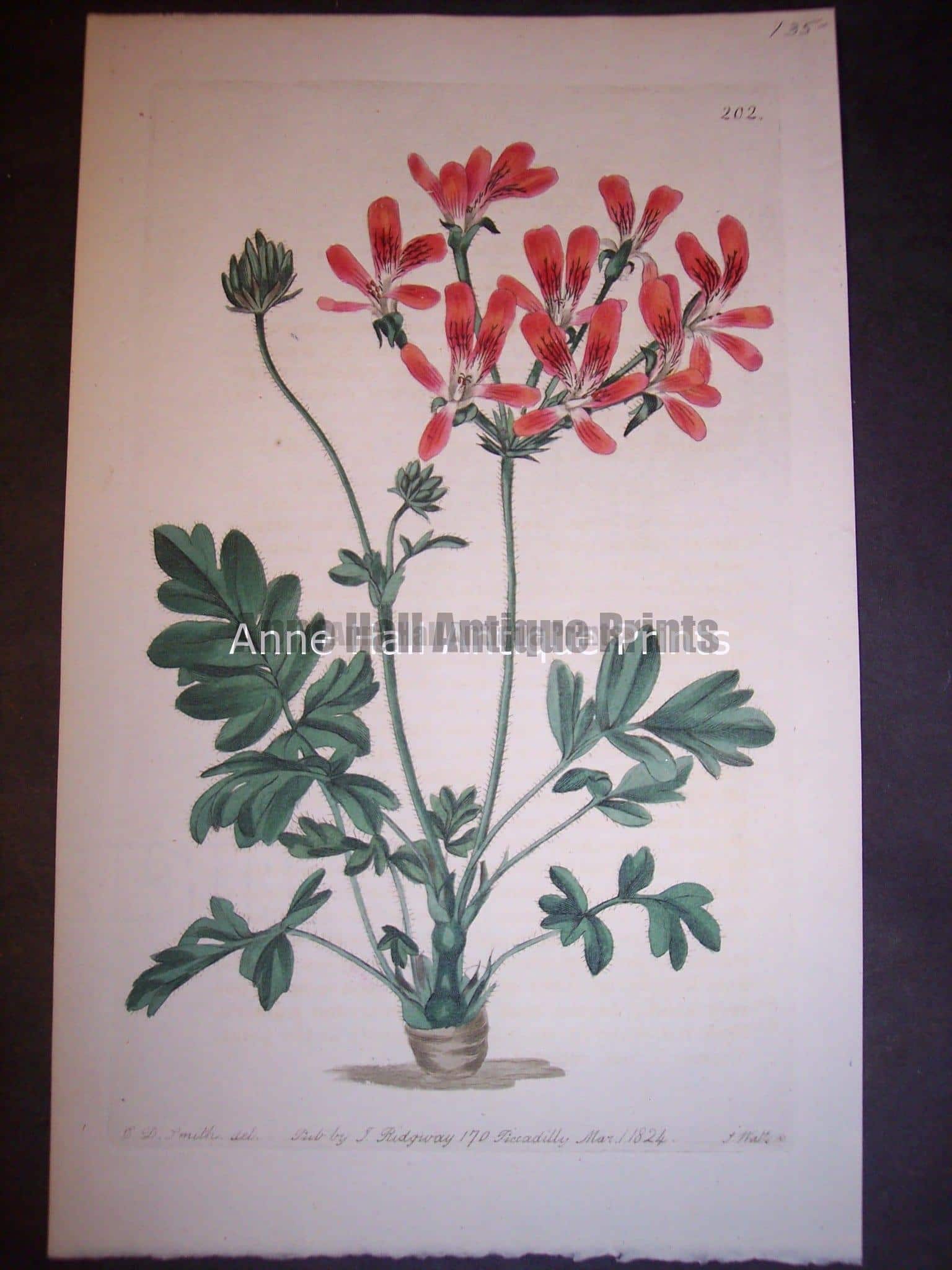 Geraniums antique prints and engravings from centuries ago. For further help pleas email Anne or Mark at oldprint@verizon.net. Or call 413-245-4197 with your special request and to see more.